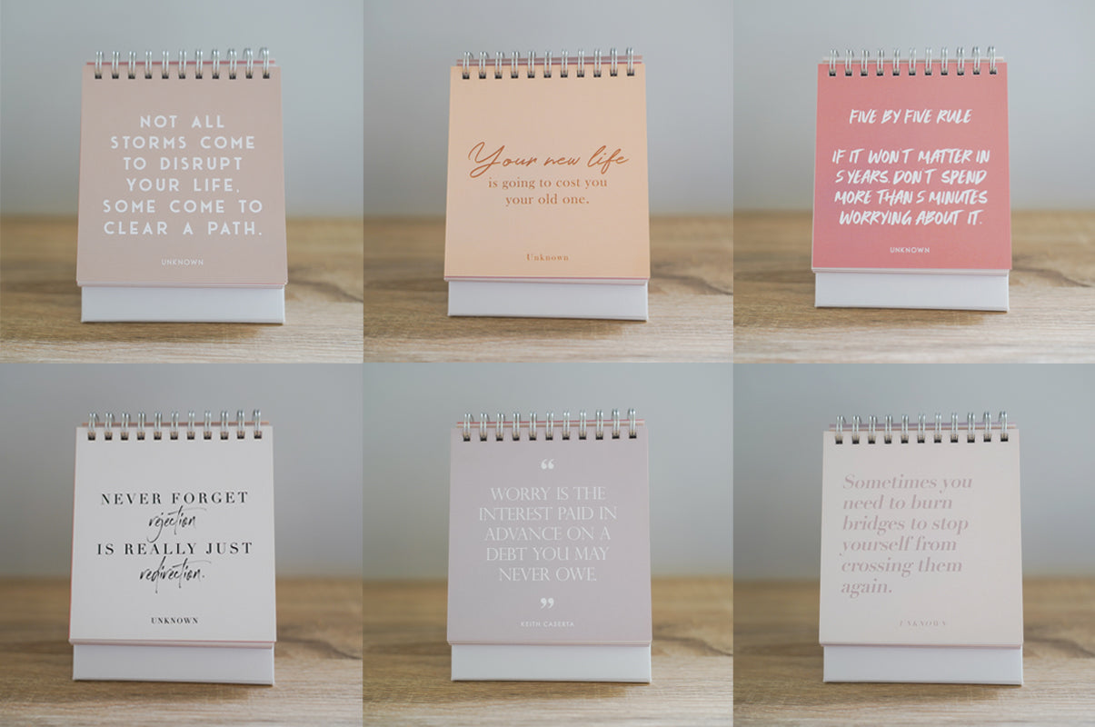 It's been a while coming but, just when we need it most, you can top up your quotivation with the second instalment of physical YAY from Spoonful of Sarah. Following your wonderful feedback on the first flip book and the joy it brings to your desks and homes each day, we thought it was high time for some new material with six new designs for each day.